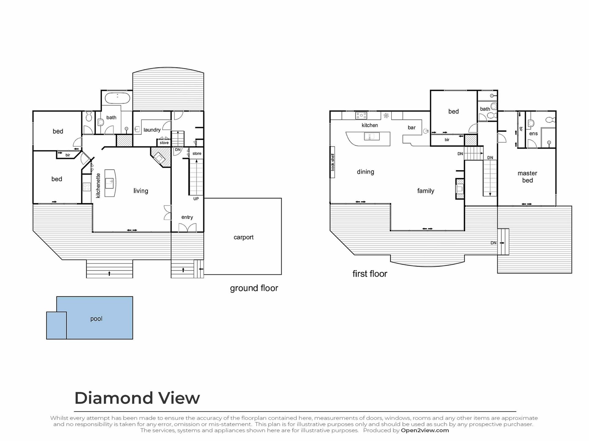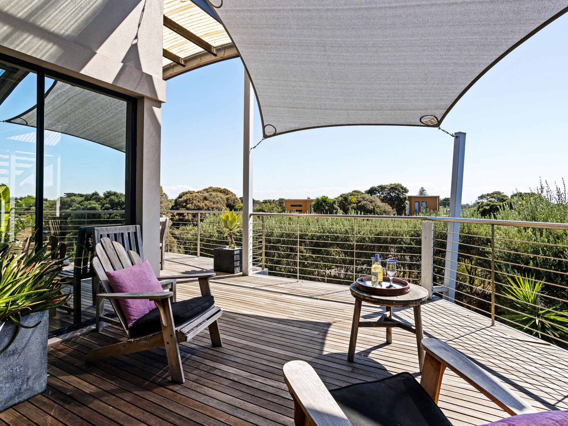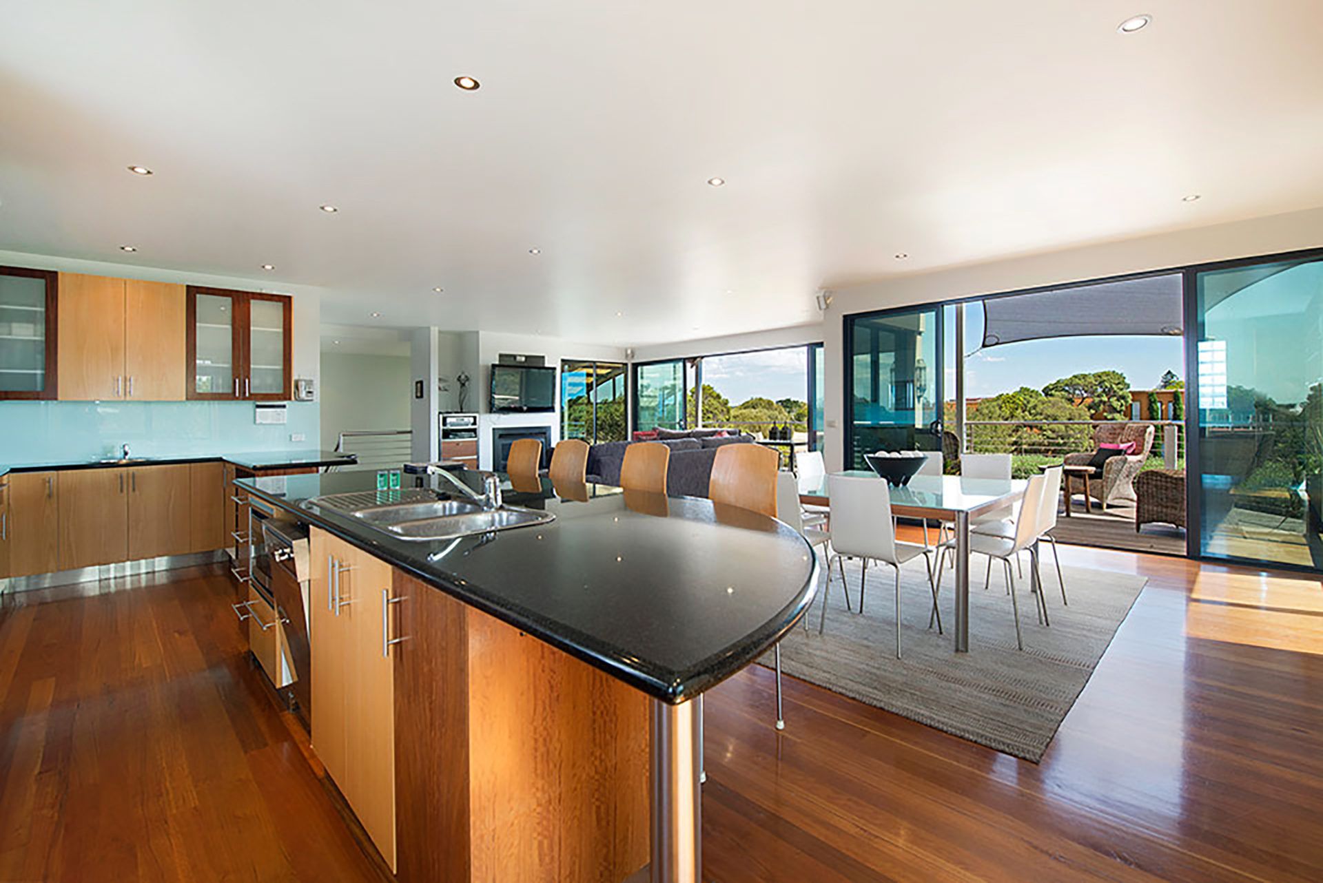 The beauty of Diamond View is that there are many places to find solitude. There are many living zones both inside and out that make this property not only exceptional but perfect for a large family or perhaps a couple of families who like to holiday together. In fact, two families could live almost remotely from each other. On both levels, you will find a kitchen, living room, and 2 bedrooms and bathrooms. The alfresco area also offers a glimpse of the bay and passing ships. The kitchen is fantastic as it combines all the modern elements to make food preparation easy and it also lends itself to entertaining. There is a fabulous black granite benchtop that acts as a bar and encourages people to socialize while cooking up a storm. The commercial bar fridge also helps. Diamond View can not be understated and would suit the absolute astute and discerning guest!