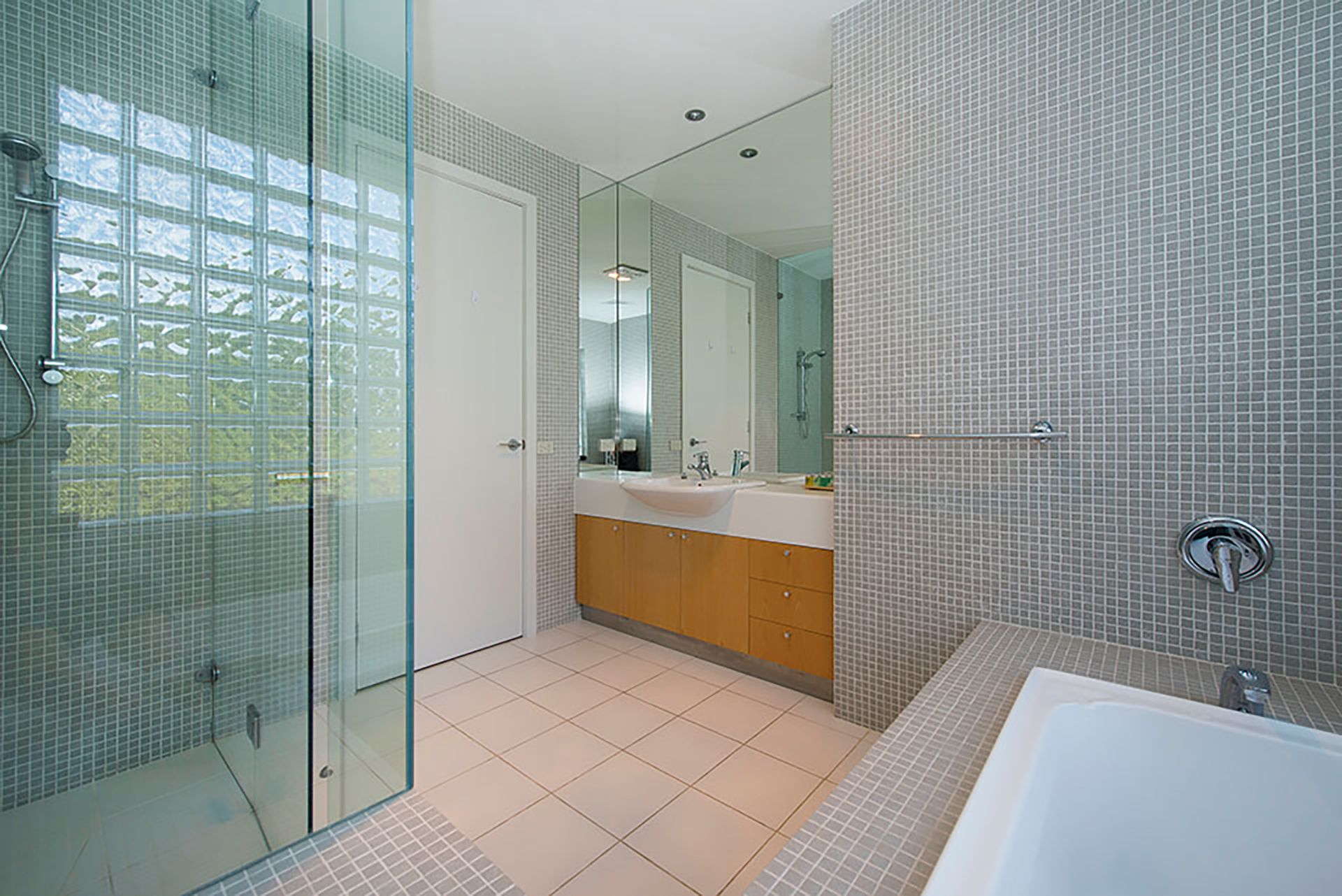 Both bedrooms have access to an enormous central bathroom, with a spa bath and separate toilet. The advantage of this level also is, it has direct access to deck and pool area.