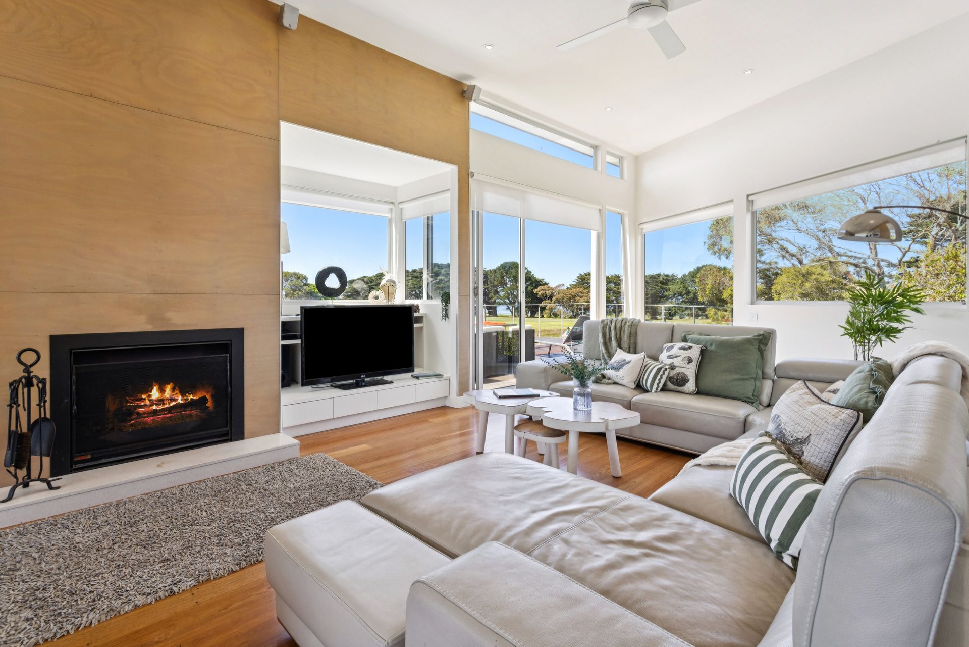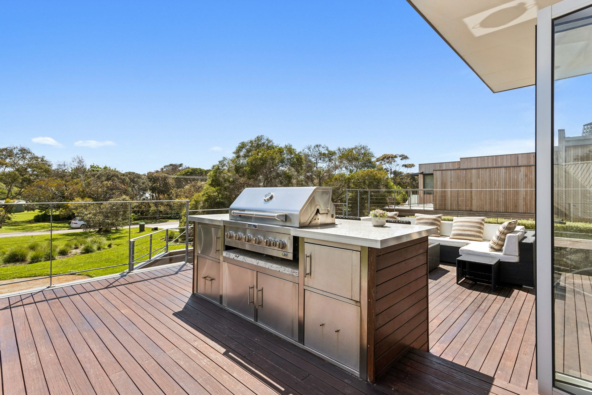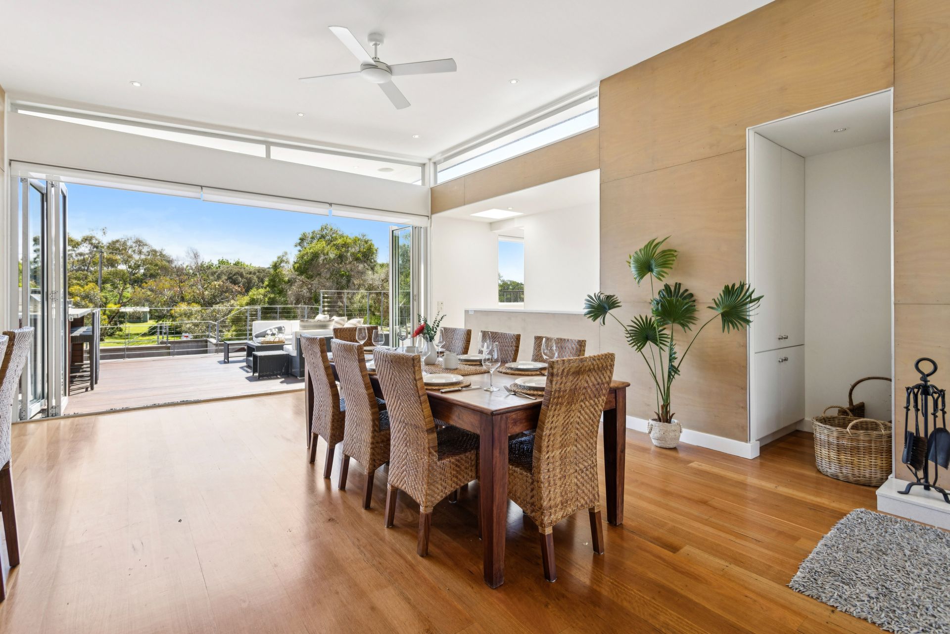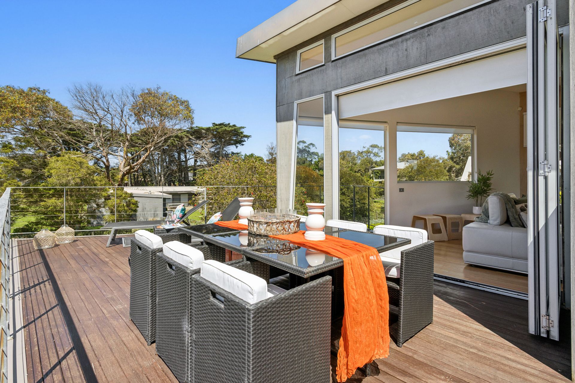 Pride and Prejudice is a fabulous house with an emphasis on indoor/outdoor living. This property which sits on the Flinders golf course and is only a short walk to the sea has been designed to open the entire upper living level to the outside world. When you combine the already large dimensions of the very smart open plan living area with bi-fold doors to both the front and rear outdoor living area - the size, space and the comfort is magnified twofold! What is evident is the sensation and ambience of being somewhere ocean side, where you can feel the breeze and smell the sea air from anywhere in the property. Pride and Prejudice is a superb property that is a fantastic getaway regardless of whether you are a couple who simply want to luxuriate in the space or whether you are 4 or 5 couples wanting to have a golfing getaway. Fabulous all year round this property is coupled with the open fire both in the upstairs living and the family room downstairs is the northerly position and the extensive use of glass, allowing a beautiful warm ambience in the cooler months. It is simply perfect!