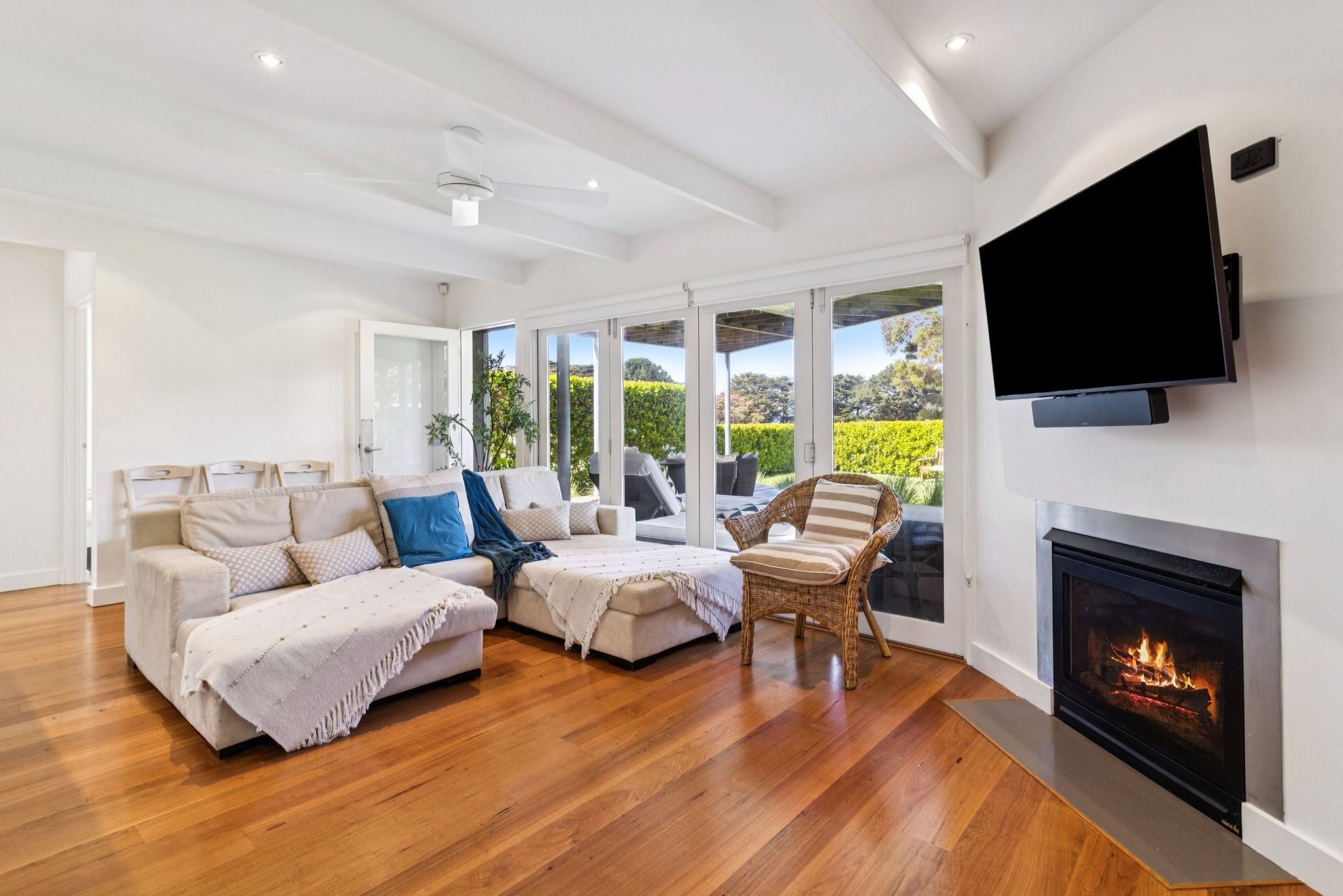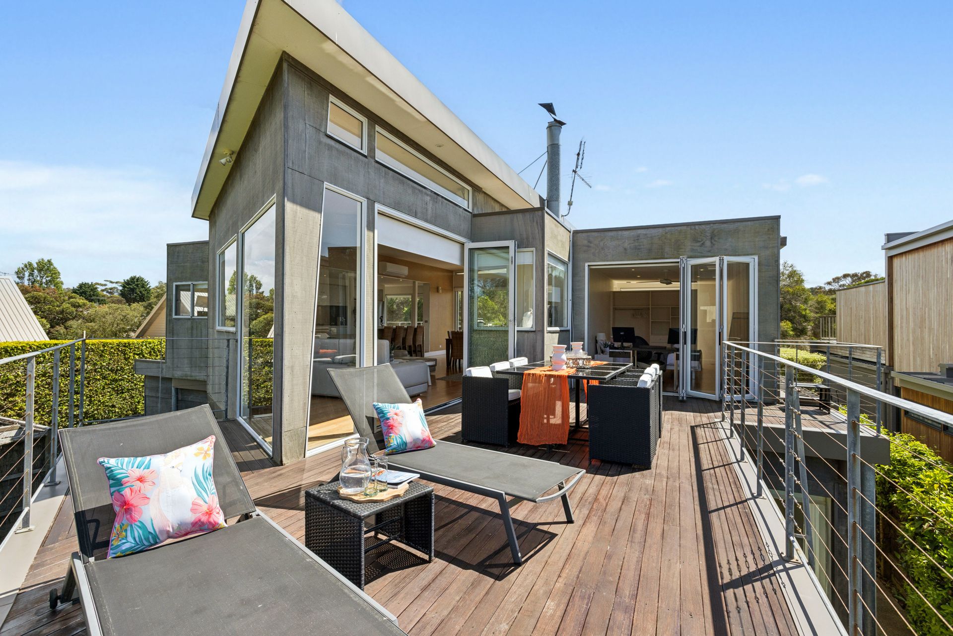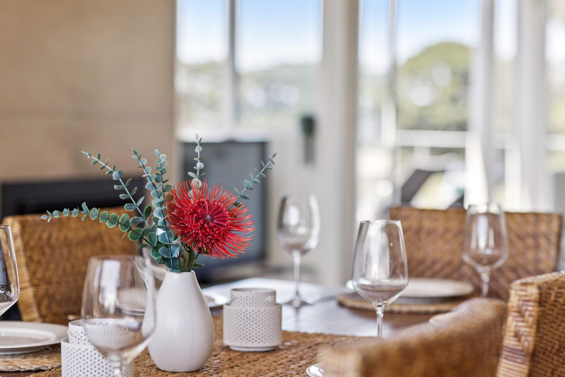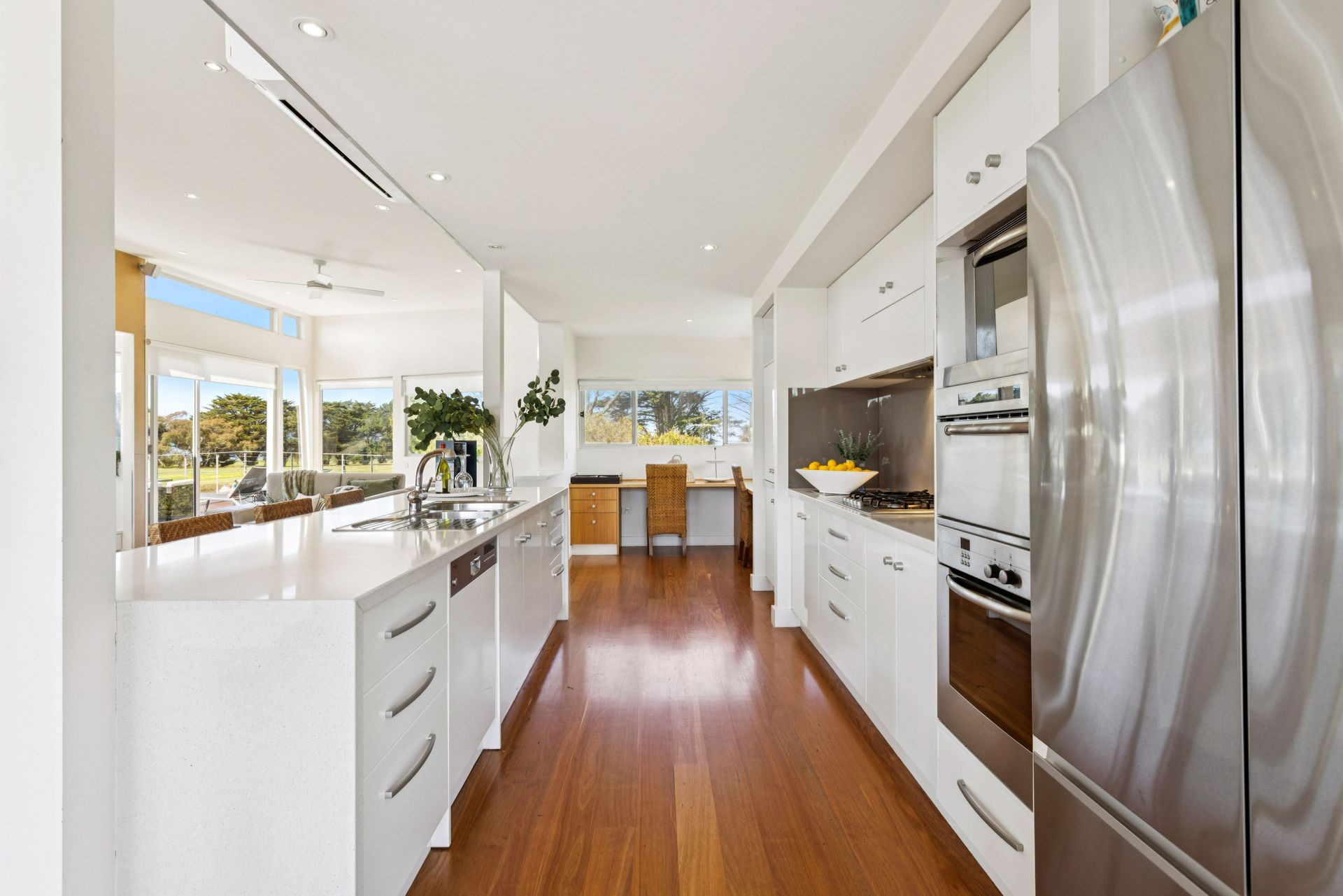 Pride and Prejudice is a fabulous house with an emphasis on indoor/outdoor living. This property which sits on the Flinders golf course and is only a short walk to the sea has been designed to open the entire upper living level to the outside world. When you combine the already large dimensions of the very smart open plan living area with bi-fold doors to both the front and rear outdoor living area - the size, space and the comfort is magnified twofold! What is evident is the sensation and ambience of being somewhere ocean side, where you can feel the breeze and smell the sea air from anywhere in the property. Pride and Prejudice is a superb property that is a fantastic getaway regardless of whether you are a couple who simply want to luxuriate in the space or whether you are 4 or 5 couples wanting to have a golfing getaway. Fabulous all year round this property is coupled with the open fire both in the upstairs living and the family room downstairs is the northerly position and the extensive use of glass, allowing a beautiful warm ambience in the cooler months. It is simply perfect!