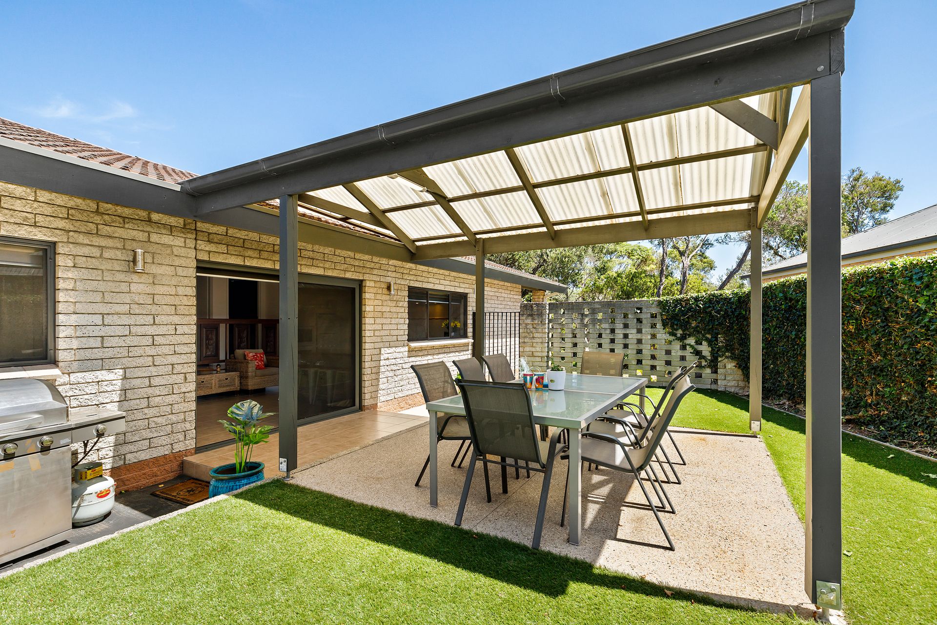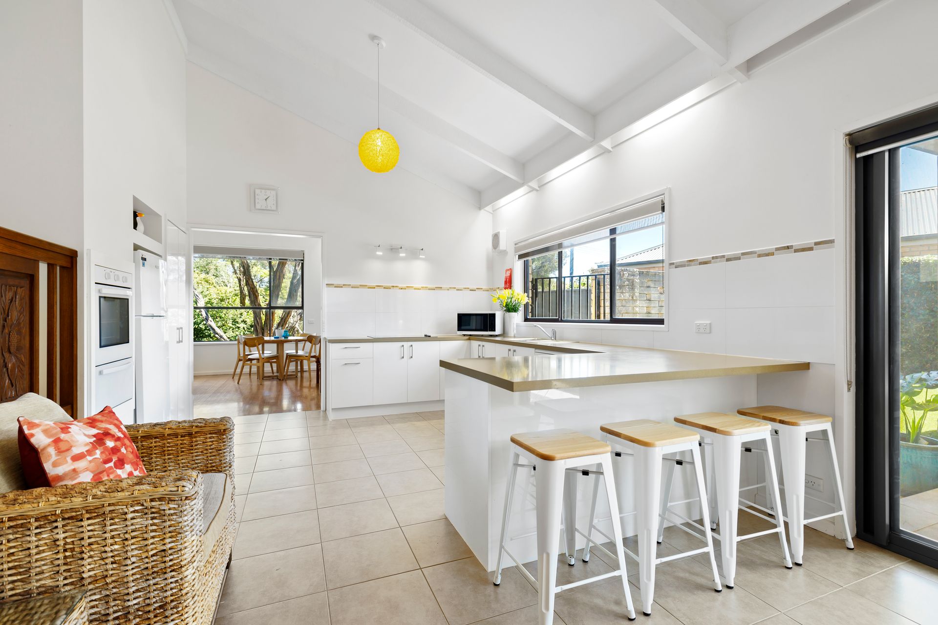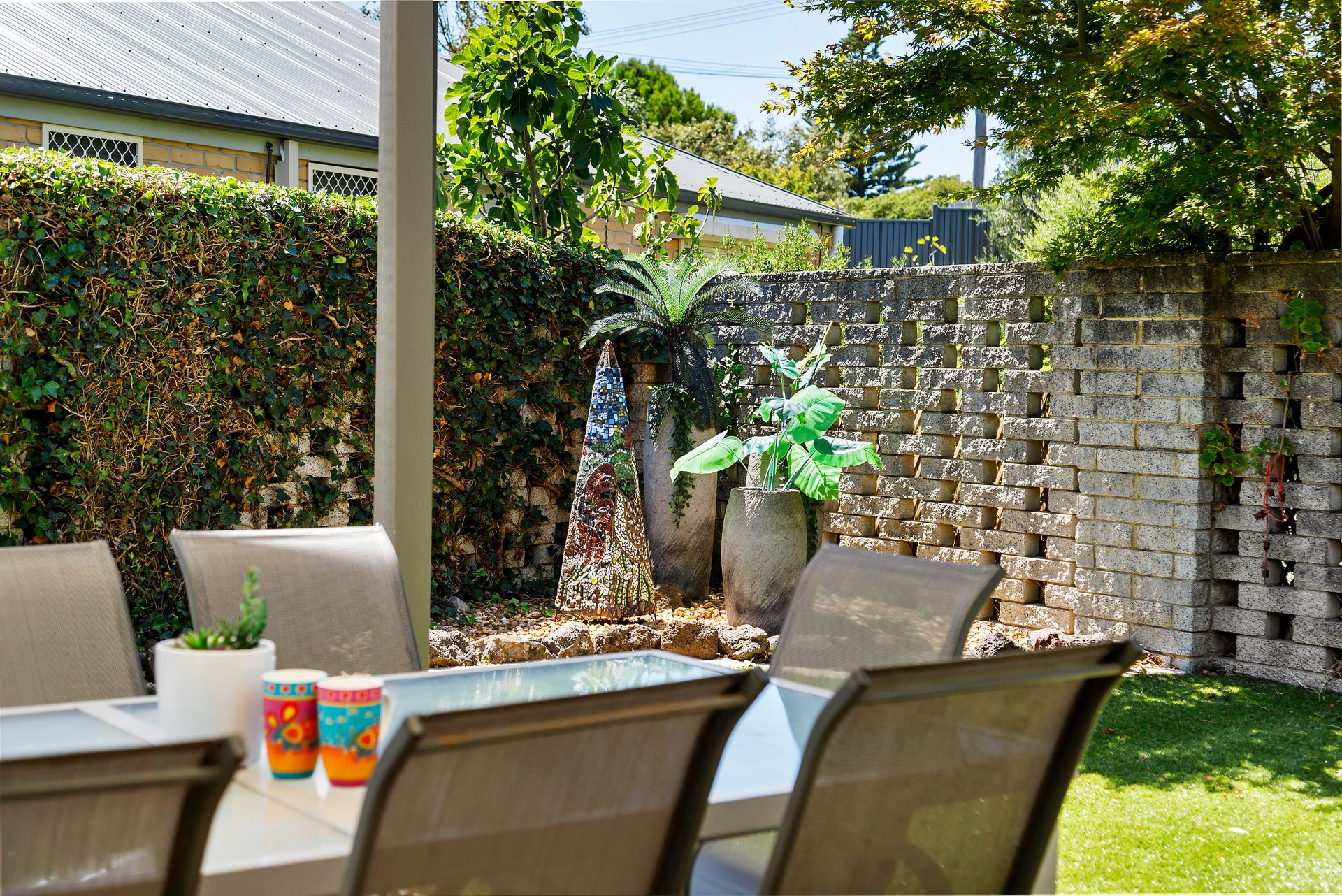 The Kitchen is an open plan design, fully equipped, and looks out onto the tranquil, spacious alfresco area. Adjacent you will find the dining and lounge area is a wonderful space with lovely furniture and a beautiful outlook over the front garden. When you step outside, you are treated to the covered alfresco entertaining area, offering total privacy and comfort. Complimented with an outdoor setting for 8 guests and a gas BBQ. A great haven for entertaining or relaxing after a fabulous day at the beach or sitting back and having a drink.