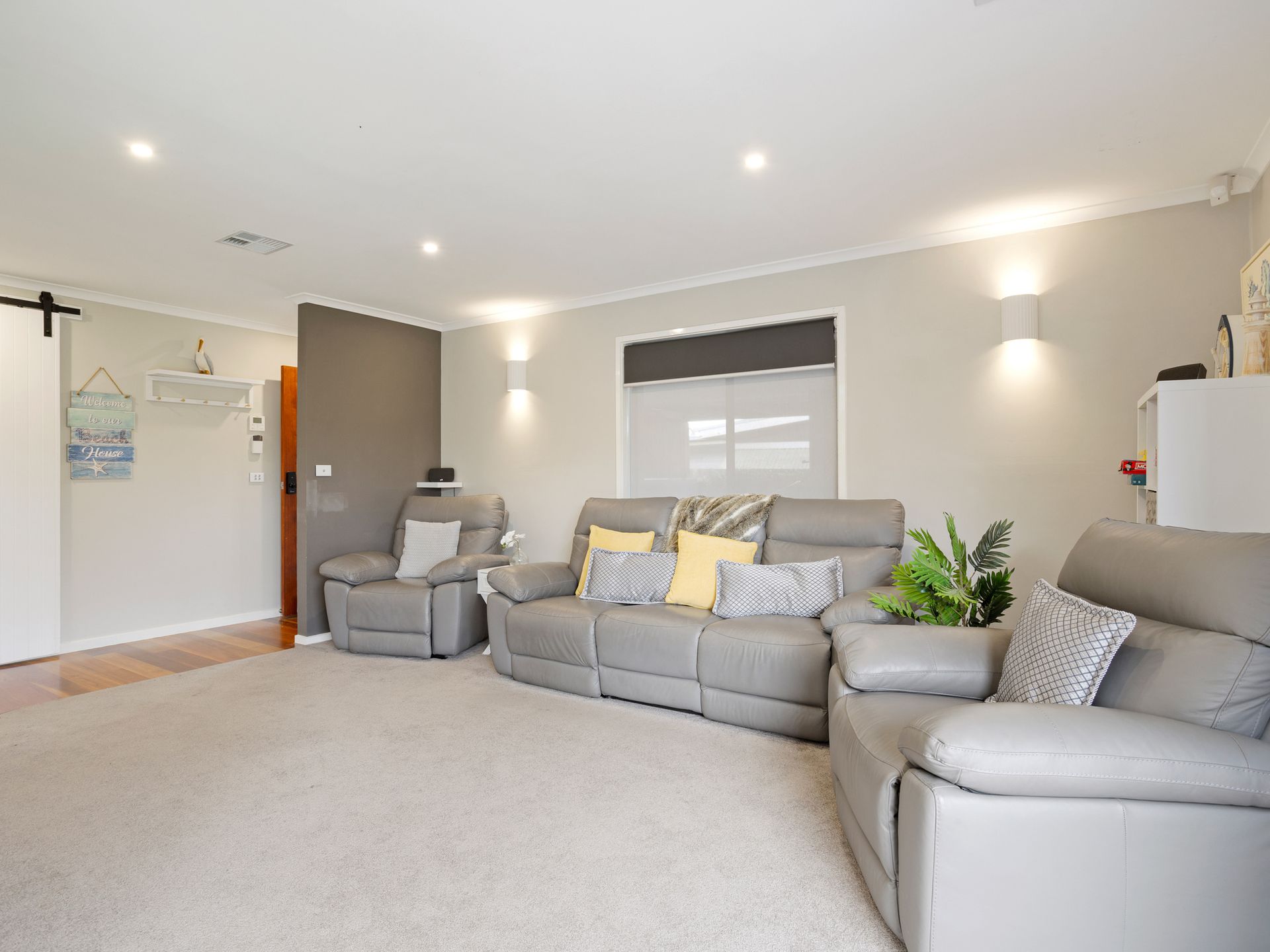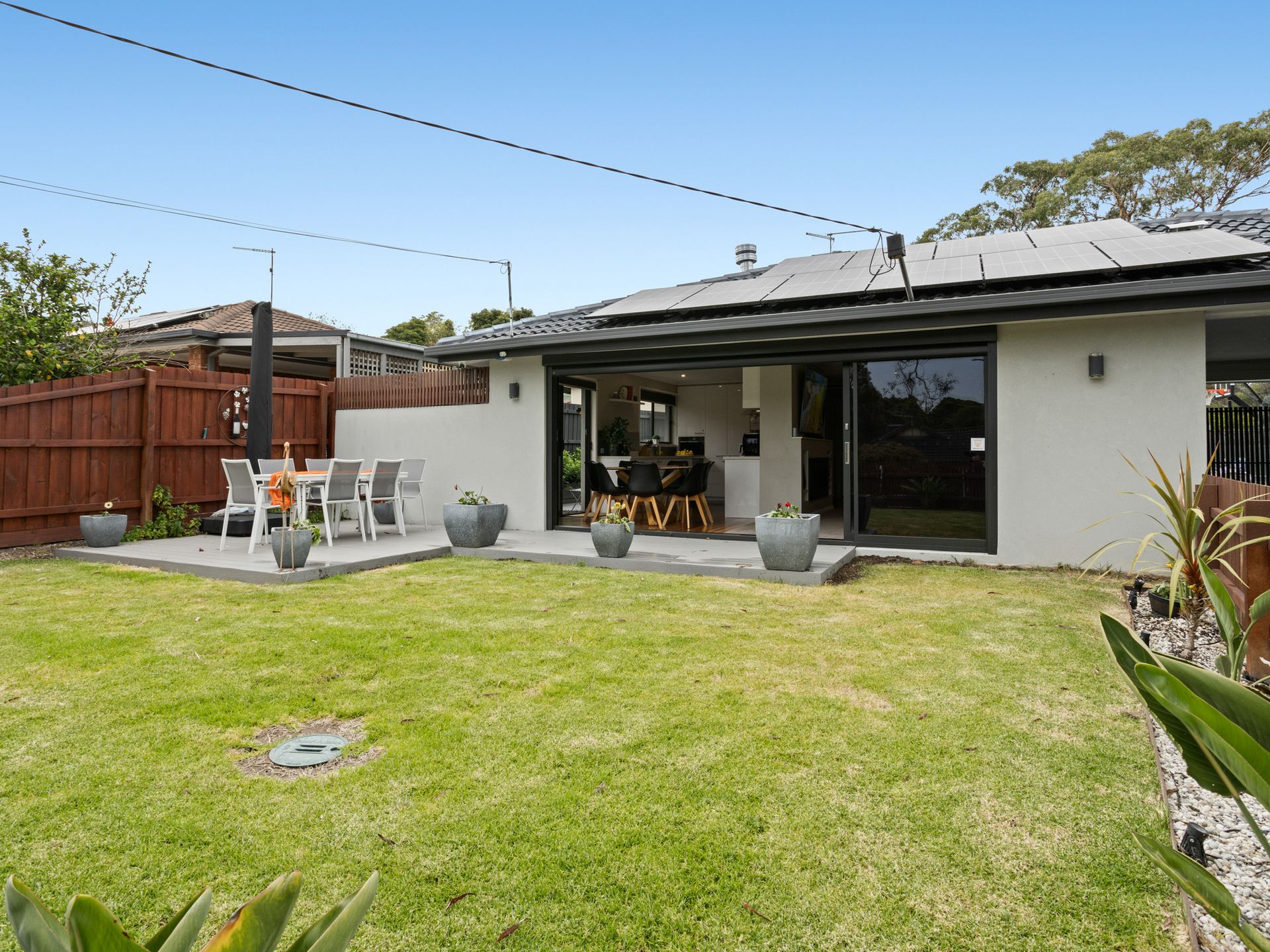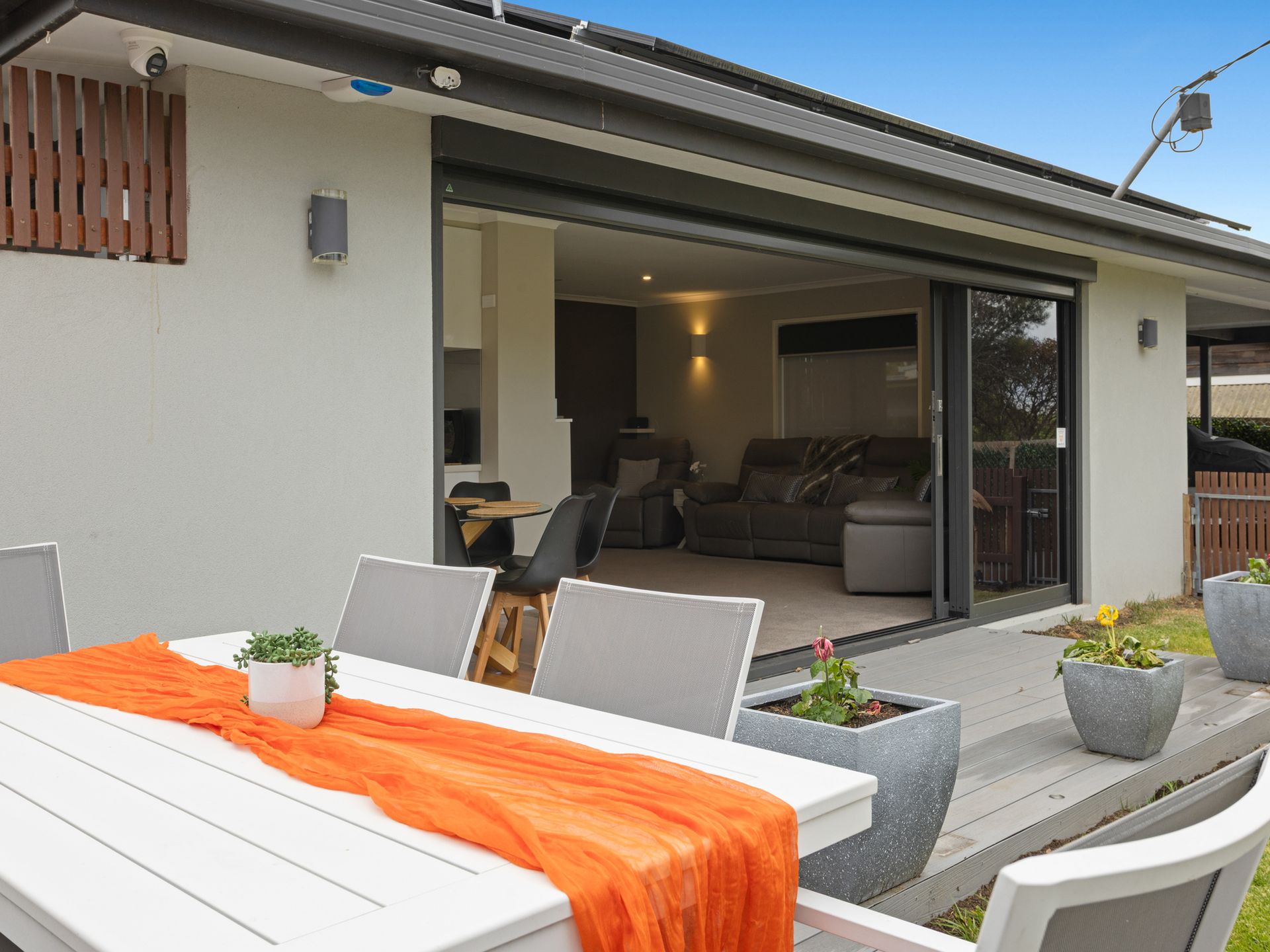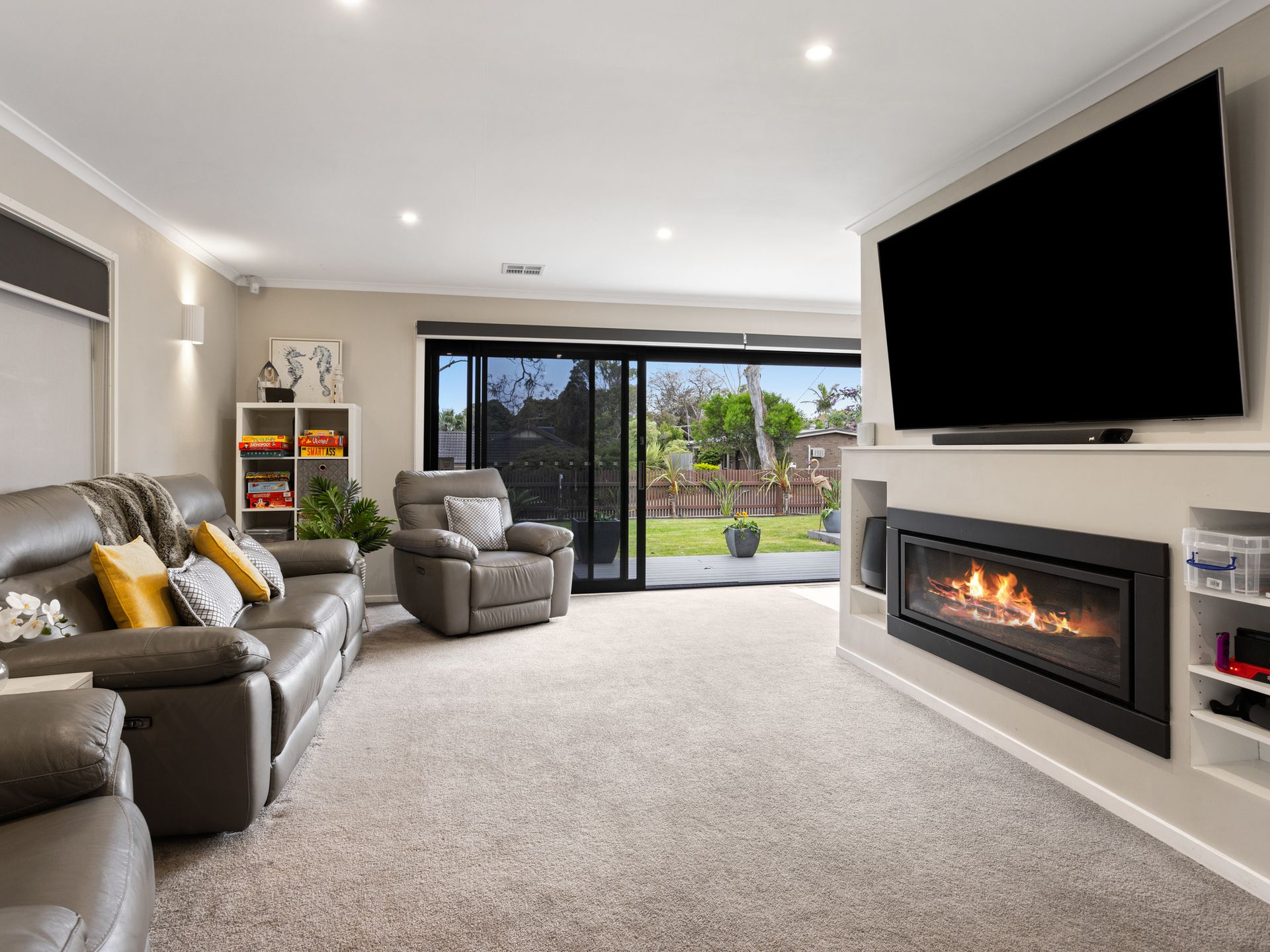 Inside, the home continues to impress with a stylish entertainment zone featuring surround sound, reclining chairs, and a warm, inviting atmosphere—perfect for movie nights or game-day viewing. Large bifold doors connect seamlessly to the outdoor dining area, creating an effortless indoor–outdoor flow ideal for shared meals, BBQs, and memorable gatherings.
