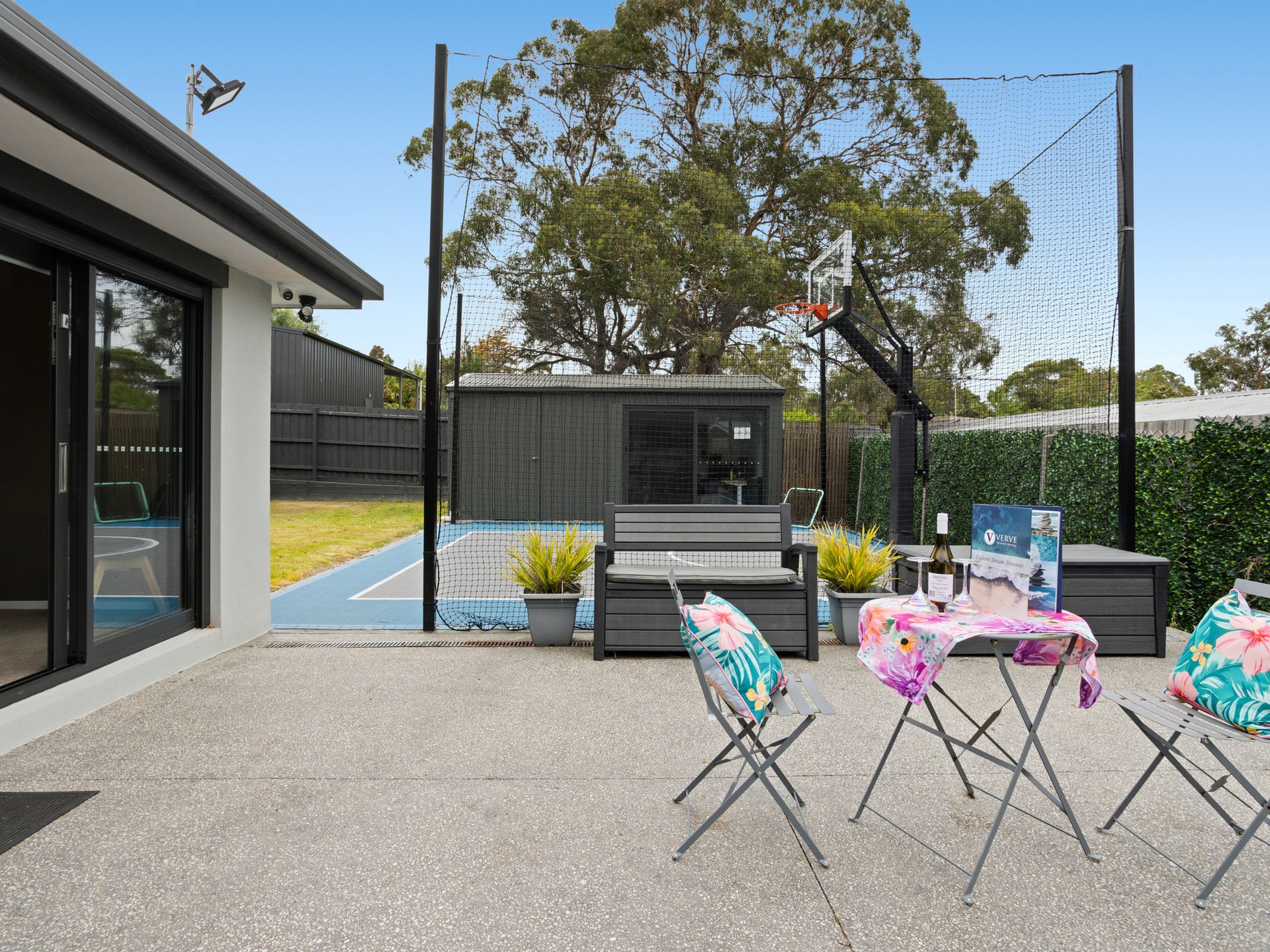 Step outside and enjoy resort-style features that elevate your getaway. Soak in the private spa after a day at the beach, let the kids burn off energy on the trampoline, or challenge friends and family on the dedicated basketball court. The expansive outdoor areas are ideal for enjoying fresh coastal air and relaxed holiday moments.
