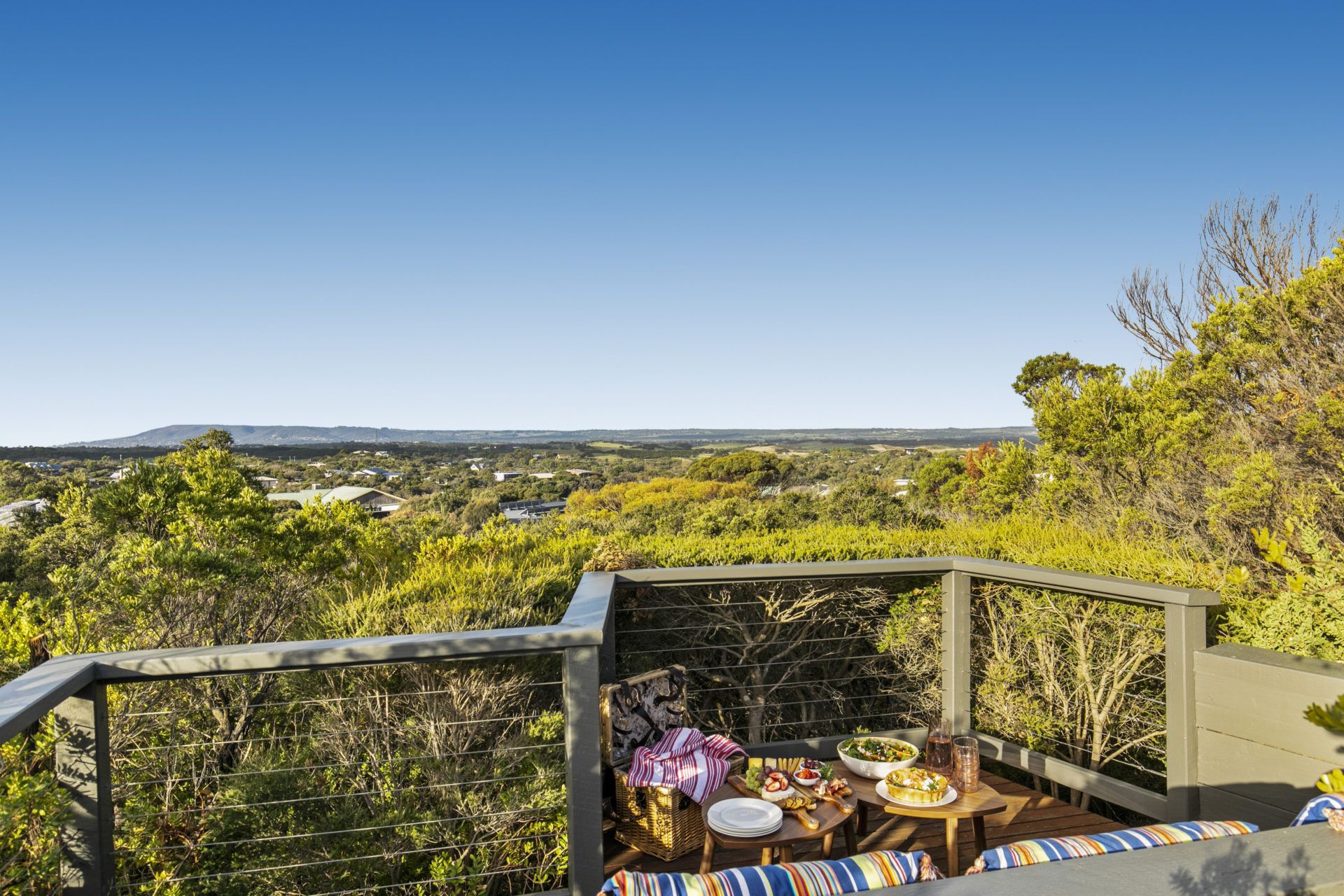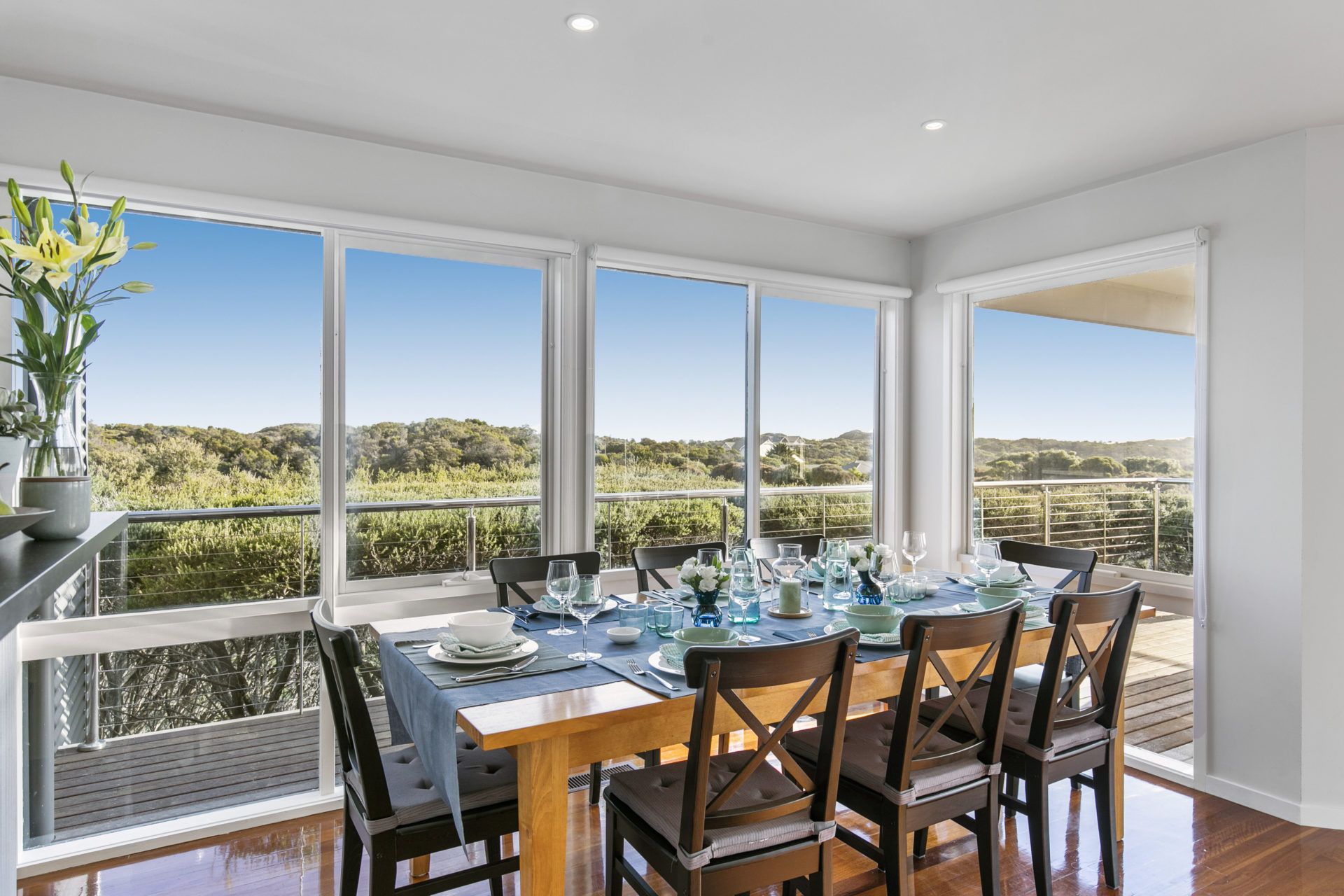 "Dunescape" is only a mere 1 hour, 30-minute drive from Melbourne's CBD and a whole world away from the mundane. Come and enjoy this very special part of the Mornington Peninsula. Start your day with a refreshing walk along the back beach, perfect for blowing away the cobwebs at any time of the year! Have breakfast on one of the numerous decks or escape to one of the hidden garden nooks with the gentle sounds of the ocean in the background. Visit a country market for fresh local produce, or peruse boutique shops at one of our nearby seaside villages. Book a game of golf at one of our premier golf courses (The Dunes, The National, Moonah Links, Sorrento, Portsea, or Flinders) . Perhaps an indulgent spa day at the Peninsula Hot Springs is more your style, only 5 minutes away! Fire up the BBQ and settle back to admire a magnificent sunset on the deck or by the pool, a glass of champagne in hand, an absolute entertainers paradise!