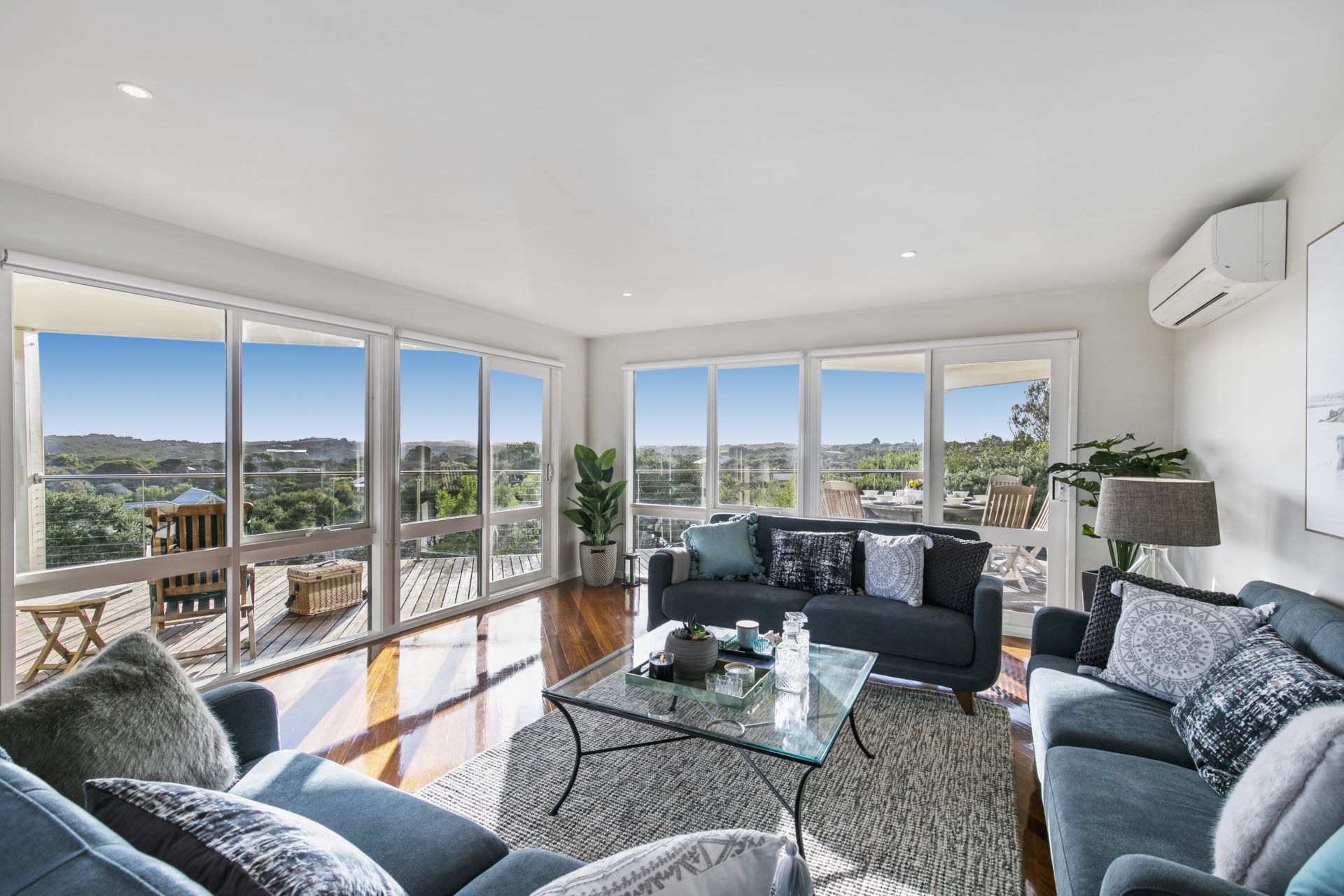 Comfortably sleeping up to 13 guests with an option to accommodate an additional 2 guests (1 or 2 small children only please - adults not permitted) on the sofa bed if bedding flexibility is required, this home is just perfect for extended family groups. With a fully equipped kitchen, two spacious living zones, entertaining areas, viewing decks, a grassed lawn with trampoline, ropes course and swing and of course the shimmering pool, there is somewhere for everyone to enjoy. Ducted heating throughout and split system in main kitchen / living / dining area.